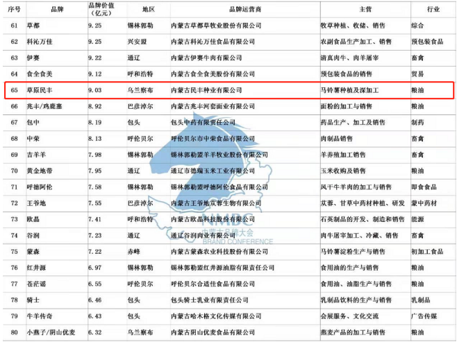 公司注冊有種薯“草原民豐”、鮮薯“敕勒川”和“塞宜德”、燕麥加工系列“陰山優(yōu)麥”等品牌商標(biāo),其中“草原民豐”2013年被授予“內(nèi)蒙古著名商標(biāo)”,“草原民豐”牌馬鈴薯系列產(chǎn)品2013年被授信為“中國著名品牌”,并榮獲“第十一屆中國國際農(nóng)產(chǎn)品交易會參展產(chǎn)品金獎”。公司自主選育的馬鈴薯新品種“民豐紅”,被評定為內(nèi)蒙古“名優(yōu)特”產(chǎn)品,2010年獲“中國民營科技創(chuàng)新成果金獎”,2015年正式通過自治區(qū)品種認(rèn)定,同年榮獲“自治區(qū)主席質(zhì)量獎”榮譽稱號。2017 年“民豐種業(yè)、草原民豐、敕勒川、塞宜德、陰山優(yōu)麥”品牌被評為內(nèi)蒙古農(nóng)畜牧產(chǎn)品市場領(lǐng)先品牌,2018年榮獲“自治區(qū)優(yōu)秀民營企業(yè)”稱號,2019年“草原民豐”品牌被評為“2019年內(nèi)蒙古馬鈴薯產(chǎn)業(yè)行業(yè)標(biāo)志性品牌”,內(nèi)蒙古品牌價值評估值9.03億元,在內(nèi)蒙古品牌總榜單排名第65位。2020年在抗擊疫情過程中,被湖北慈善總會、烏蘭察布紅十字會、烏蘭察布橋東社區(qū)等多地授予“愛心企業(yè)”稱號。